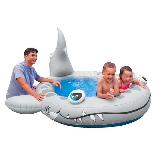 Надувной детский бассейн Акула "Intex 57433NP Sandy Shark Spray Pool" размером 229 х 226 х 107 см сделан из прочного винила