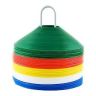 Фишки для разметки поля в виде усеченных конусов, мягкий пластик, комплект из 40 штук (синие, белые, оранжевые, желтые), высота 5 см, диаметр 19 см, на подставке без стопора.