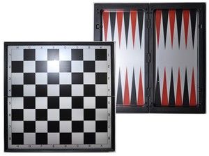 Игра настольная магнитная «3 в 1». Набор укомплектован тремя играми: нарды, шахматы и шашками. Благодаря магнитной основе игровых фигур во время игры они не соскальзывают с игрового поля.