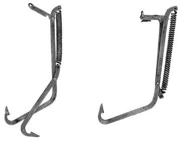 Капкан взводится (провочный штырек верхнего «зубца» заводится в зацеп сторожка).