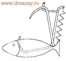 Механизм орудия лова срабатывает при заглатывании наживки рыбой и надавливании на нижний «зубец».