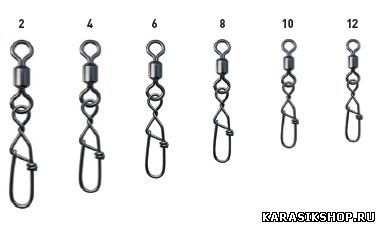 Карабины служат соединителем приманки с плетеным шнуром или поводком и очень удобны для быстрой смены приманки. При проводке, из-за ассиметричности приманки, создается эффект вертолета, что может отрицательно повлиять на ход ловли и на сохранность всей снасти, по этой причине рекомендуется использовать застежки с вертлюжком.