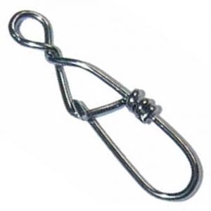 Застежки и карабины служат соединителем приманки с плетеным шнуром или поводком и очень удобны для быстрой смены приманки. При проводке, из-за ассиметричности приманки, создается эффект вертолета, что может отрицательно повлиять на ход ловли и на сохранность всей снасти, по этой причине рекомендуется использовать застежки с вертлюжком.