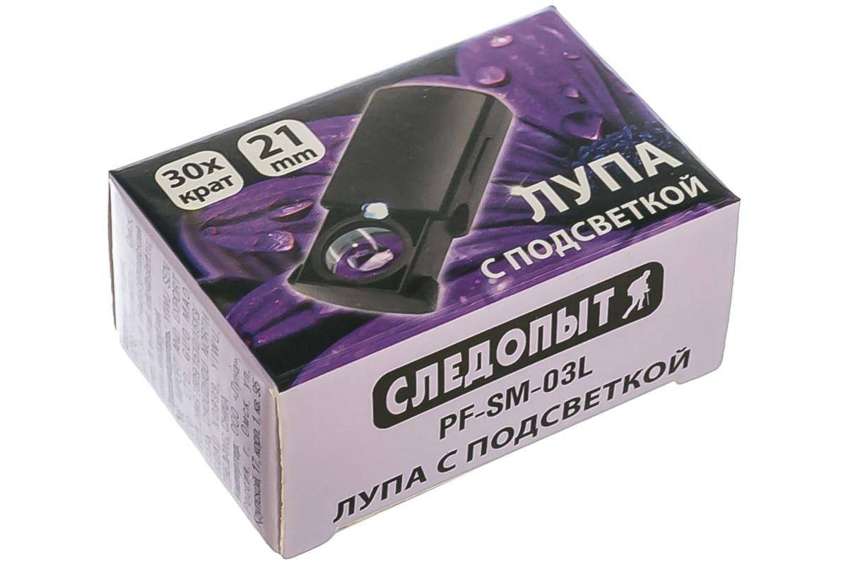 упа с подсветкой, с комплектом батареек, 31г Следопыт PF-SM-03L обеспечивает большое увеличение мелких предметов и их подсвечивание в условиях плохой видимости. Светодиодная лампочка работает от батареек, которые поставляются в комплекте.