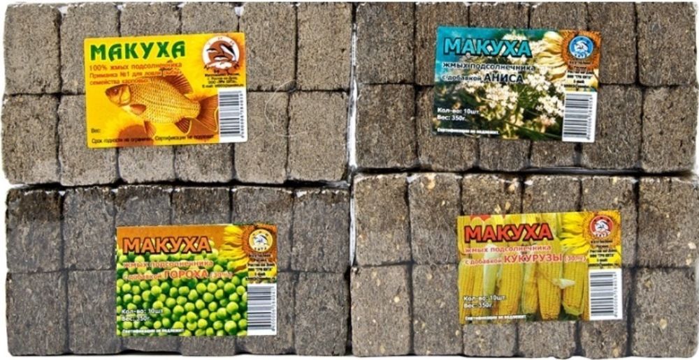 Макуха – это жмых от семян растений, выделяющих масло при помощи прессования из подсолнечника.Это самый распространенный вид прикормки и его широко применяют при ловле рыбы. . . В подавляющем большинстве на такую насадку ловят в основном крупную рыбу: такую как карп, карась сазан, линь и лещ. Но можно поймать разнообразную рыбу, которая в основном будет иметь размер выше среднего