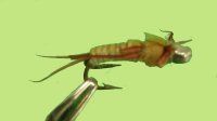 Головка: Олово. Тело и зачатки крыльев: цветная нить, цветная полимерная пленка, даббинг, обмотка мононитью.