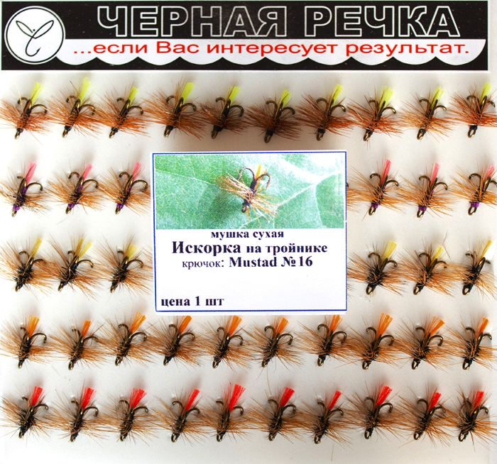 Читать все статьиМушка сухая Искорка №16 (ч.р.) на тройнике