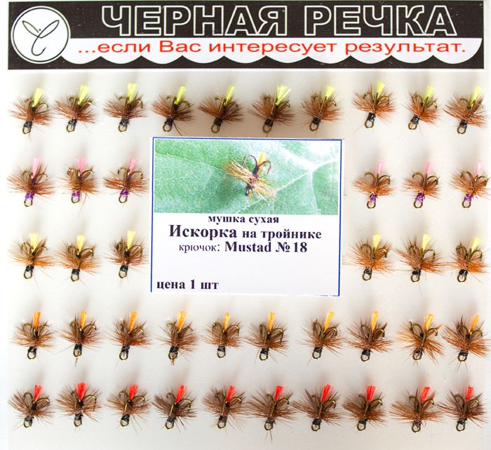 Читать все статьиМушка сухая Искорка №18 (ч.р.) на тройнике