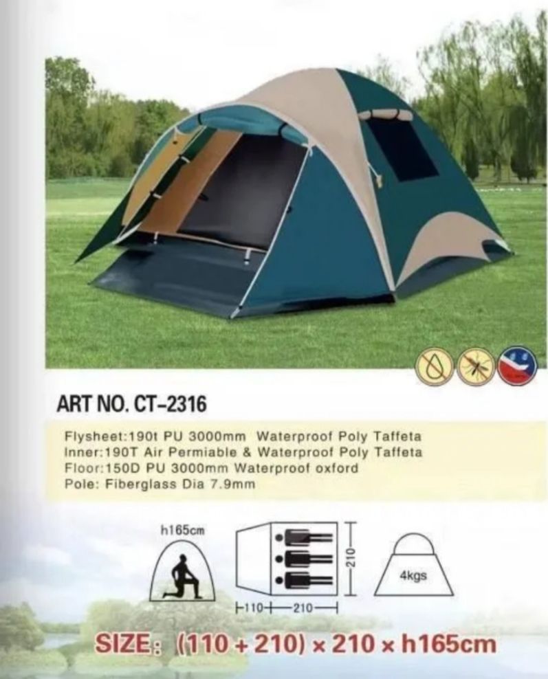 3-местная высокая туристическая палатка с тамбуром CT-2316 для кемпинга