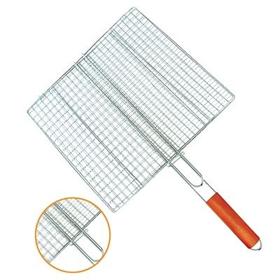 Если выбираем решетку для стационарного мангала или барбекю на даче, то берем массивную решетку с длинной ручкой.