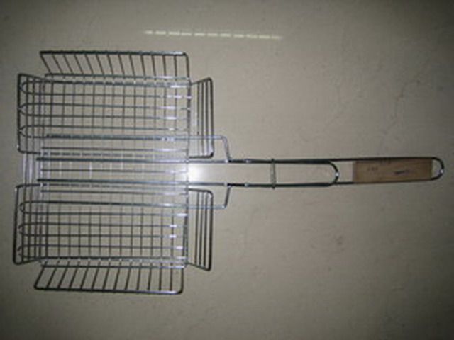 Большая решетка для барбекю изготовлена из прочной нержавеющей стали, имеет длинную ручку к тому же с деревянной вставкой, которая позволяет вращать решетку не подвергая свои руки высокой температуре. На данной решетке вы можете приготовить на открытом огне мясо, птицу, рыбу, овощи и многое другое.