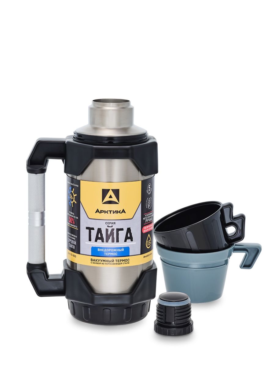 В экспедицию или в автопутешествие – куда бы вы не собрались, смело берите термос «Тайга» с собой, на него можно положиться. Идеально подойдет для любителей рыбалки и охоты. Этот надёжный термос для напитков с узким горлом имеет высокий показатель удержания тепла и успешно прошёл испытания в условиях экстремальных температур. Термос оснащен усиленной нескладной ручкой, сделанной из облегченного сплава алюминия, за которую удобно держаться даже в объемной варежке.В комплекте 2 большие и удобные чашки. Есть съемный контейнер, в котором удобно хранить чайные пакетики. Выполнен из долговечной пищевой нержавеющей стали. Благодаря оптимальной конструкции крышка термоса плотно прилегает к горлышку, обеспечивая 100% герметичности. Гарантия на вакуум – 5 лет.