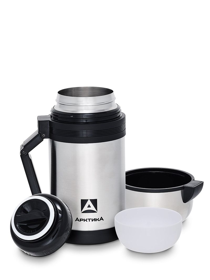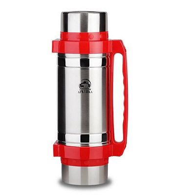 Большой термос Арктика серии 201 больше похож на портативную полевую кухню. Он обладает всеми качествами, чтобы оправдать это почетное звание. Объемная внутренняя колба позволяет вместить больше количество еды или напитка, достаточное, чтобы накормить нескольких человек. Под одной из крышек скрывается дополнительная чашка и пробка с кнопкой, под другой – две стальные складные ложки. Термос весьма устойчив: его можно поставить «стоя» и положить на бок. Вам не надоест носить большой термос Арктика 201 в руках, потому что этого делать не придется: он оснащен ремешком с простыми и удобными креплениями на корпусе.