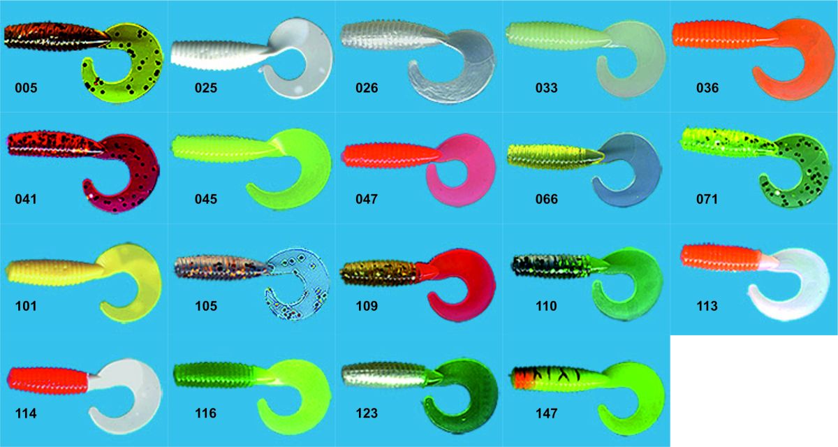 Применение разных расцветок дает твистеру схожесть с головастиками, жучками и другой живностью.